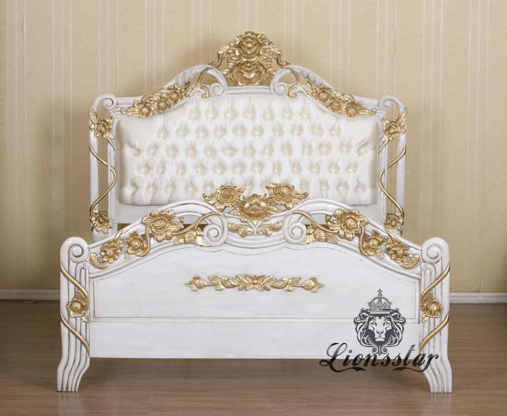 Die Oberfläche dieses Massivholz Louis Bettes Königin wurde in mehreren aufwendigen Arbeitsgängen veredelt.