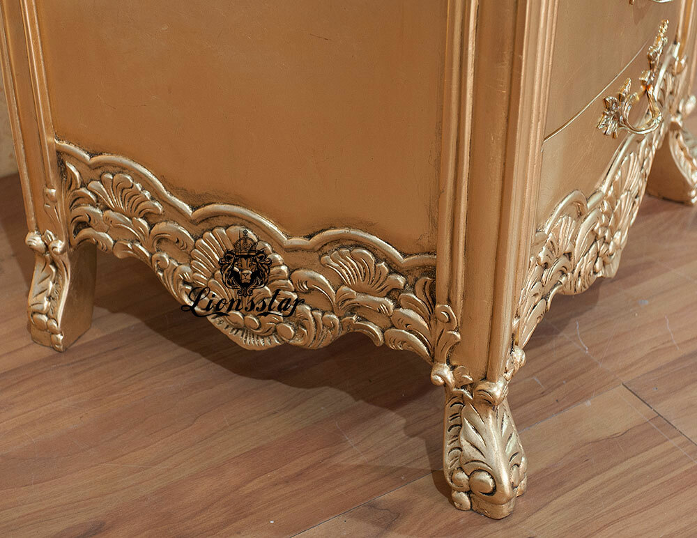 Die Oberfläche dieses Nachttisches Gloria Antik wurde in mehreren aufwendigen Arbeitsgängen veredelt.
