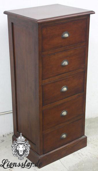 Die Lionsstar Möbeldesign GmbH produziert jedes Möbelstück handgefertigt. Diese Aktenkommode Mahagoni 5er aus massivem Mahagoniholz ist mit wunderschönen, geschnitzten Verzierungen ausgestattet.