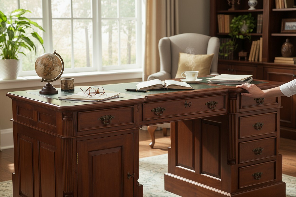 Die Partnerdesks sind verschiedenen Stilrichtungen nachempfunden, sei es der klassische Landhausstil, der goldene Charm des Barockstils oder im romantischen Kolonialstil. Lassen Sie sich von luxuriösen Partnerdesks inspirieren die Ihren Arbeitsplatz in eine Wohlfühloase verwandeln.