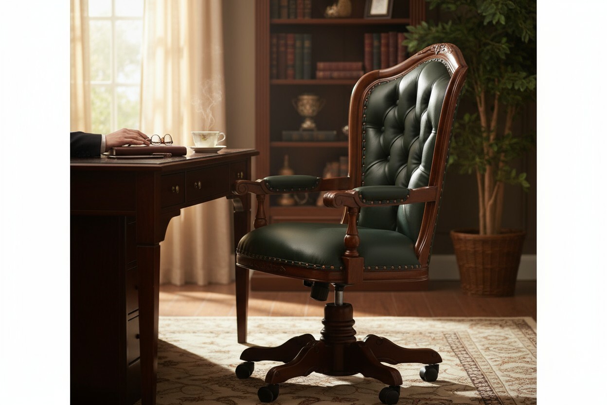 Die Oberfläche dieses Barockstil Bürostuhls wurde in mehreren aufwendigen Arbeitsgängen veredelt.