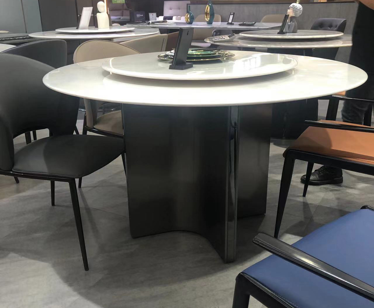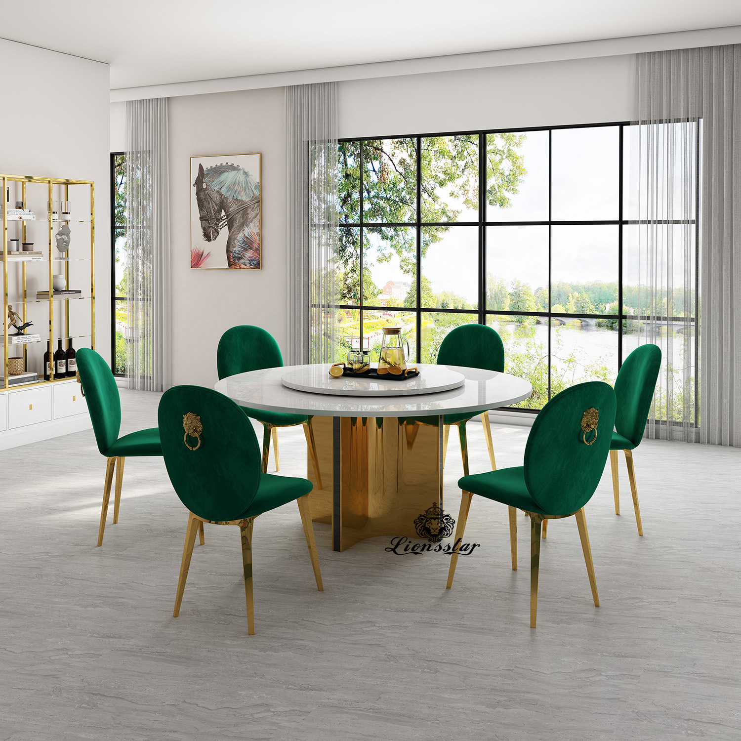 Die Lionsstar Möbeldesign GmbH produziert jedes Möbelstück handgefertigt. Dieser handgefertigte Designer Esstisch Golden Spirit hat eine edle Metall-Konstruktion und eine exklusive Platte mit modernem Charm.