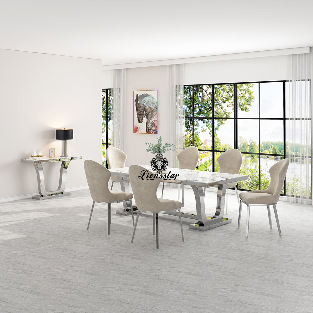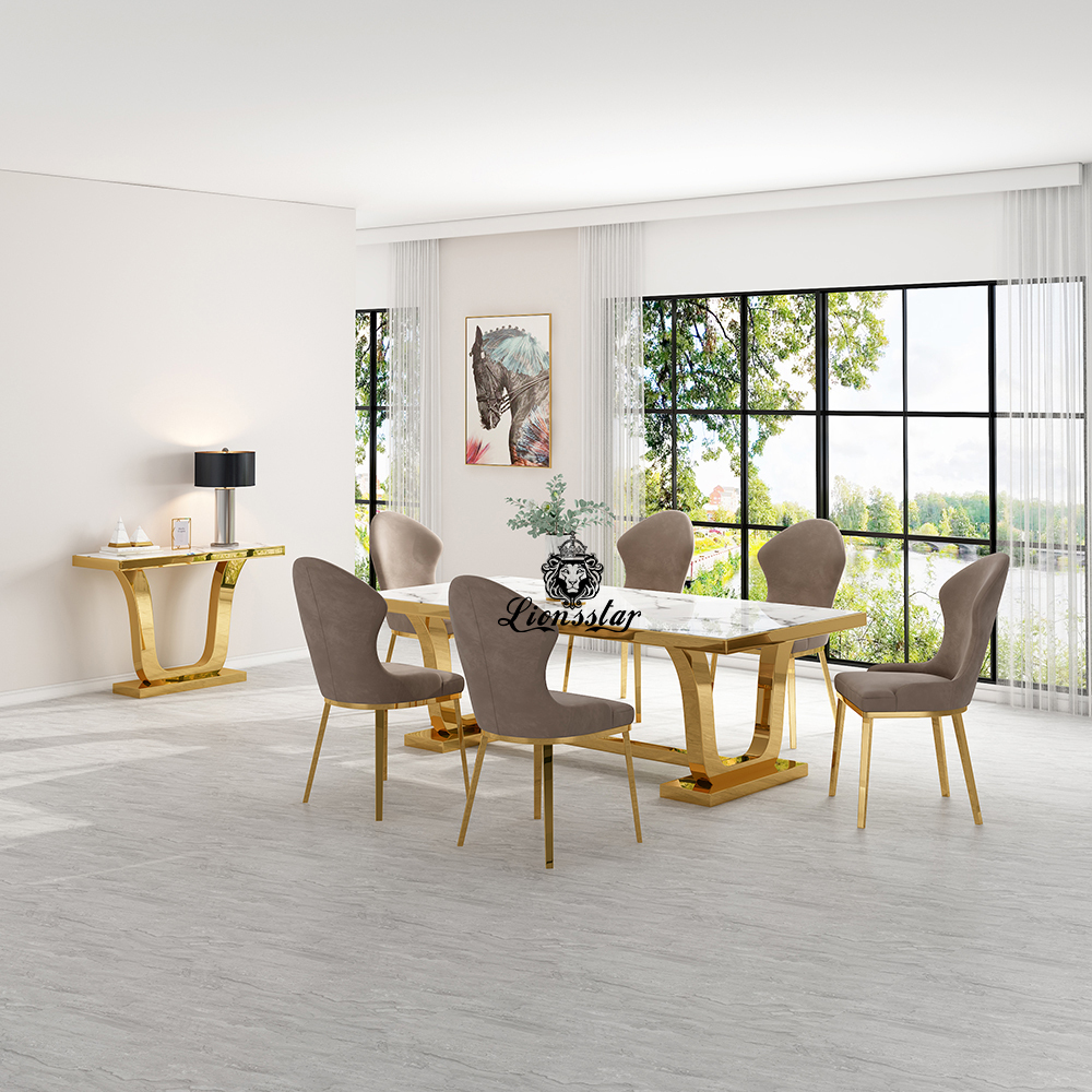 Die Lionsstar Möbeldesign GmbH produziert jedes Möbelstück handgefertigt. Dieser handgefertigte Designer Esstisch Pharao hat eine edle Metall-Konstruktion und eine exklusive Platte mit modernem Charm.