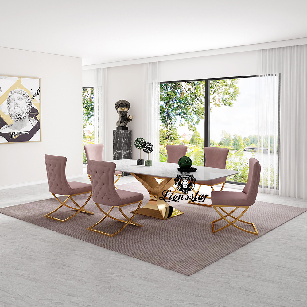 Die Lionsstar Möbeldesign GmbH produziert jedes Möbelstück handgefertigt. Dieser handgefertigte Luxus Designer Esstisch New York hat edle Metall-Elemente und eine exklusive Platte mit modernem Charm.