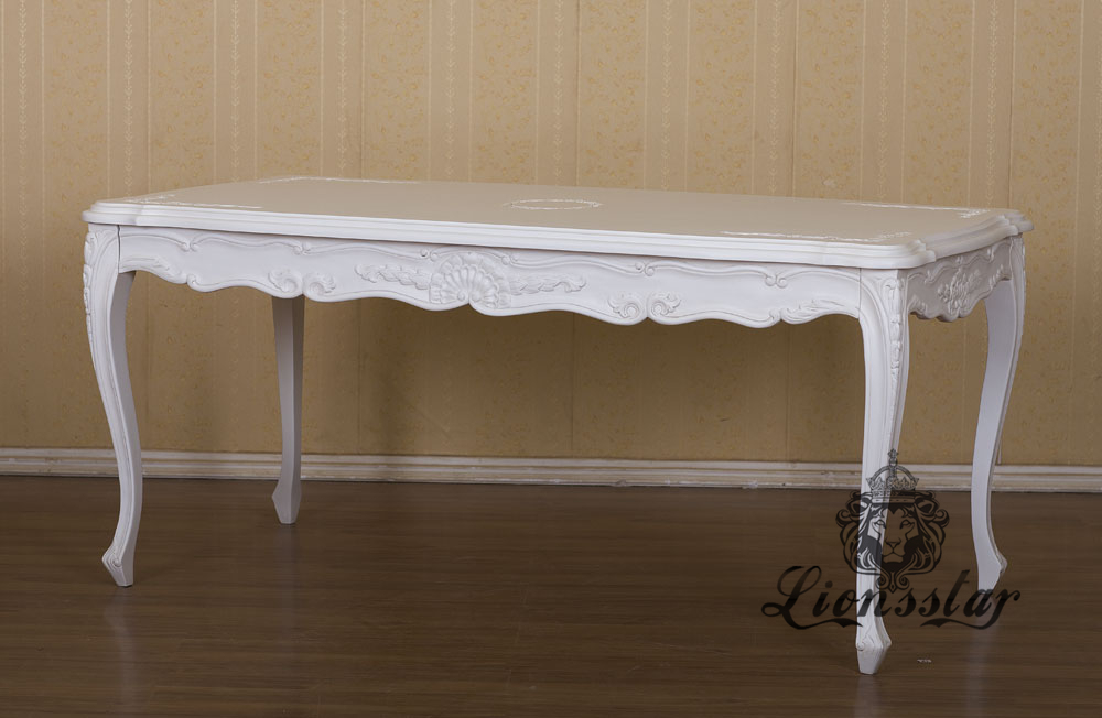 Die Oberfläche dieses Barockstil Esstisches Weiß wurde in mehreren aufwendigen Arbeitsgängen veredelt.