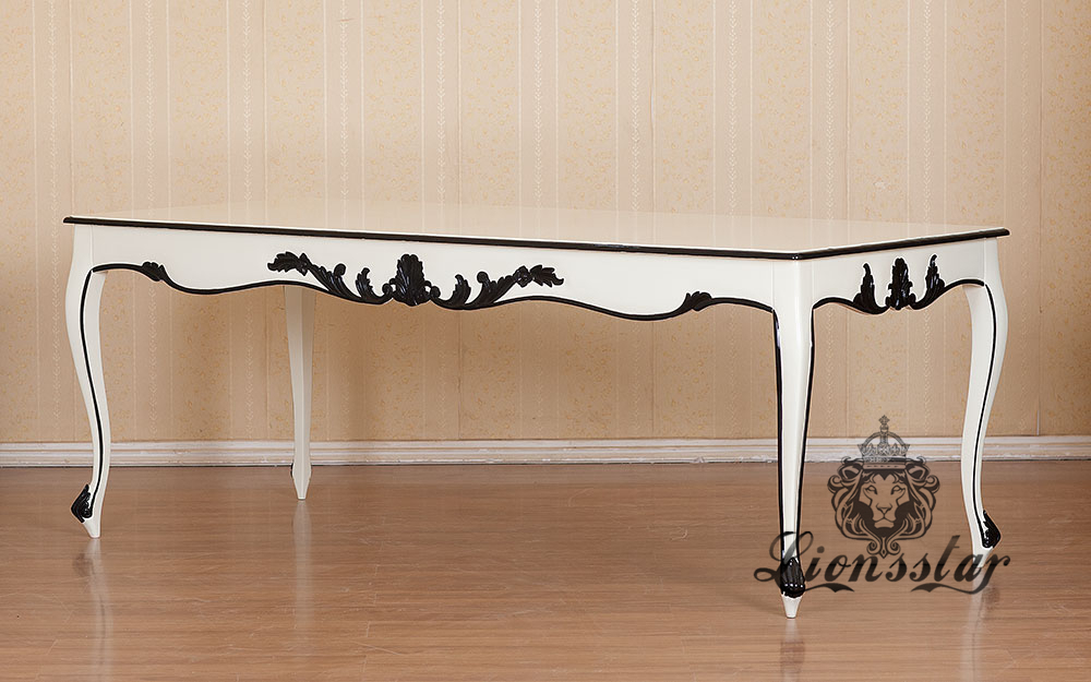 Die Oberfläche dieses Rokoko Esstisches Weiß Schwarz wurde in mehreren aufwendigen Arbeitsgängen veredelt.