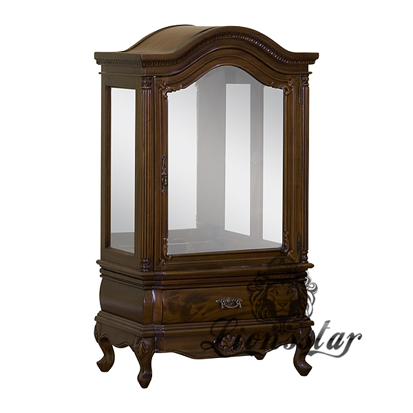 Die Oberfläche dieser Massivholz Vitrine Viktor wurde in mehreren aufwendigen Arbeitsgängen veredelt.