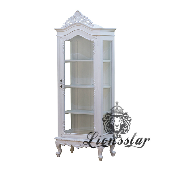 Die Oberfläche dieser Rokoko Vitrine Weiß wurde in mehreren aufwendigen Arbeitsgängen veredelt.