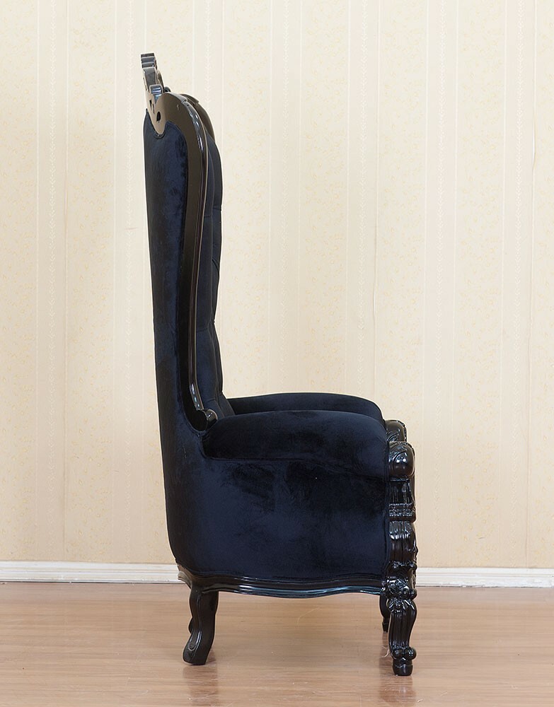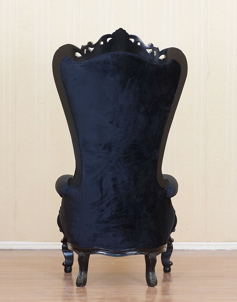 Die Lionsstar Möbeldesign GmbH produziert jedes Möbelstück handgefertigt. Dieser King Chair Schwarz aus massivem Mahagoniholz hat prachtvolle Fußteile mit wunderschönen geschnitzten Verzierungen.