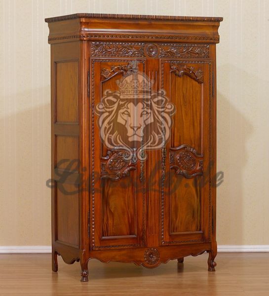 Die Lionsstar Möbeldesign GmbH produziert jedes Möbelstück handgefertigt. Dieser Schrank Kolonialstil aus massivem Mahagoniholz hat prachtvolle Fußteile mit wunderschönen geschnitzten Verzierungen.