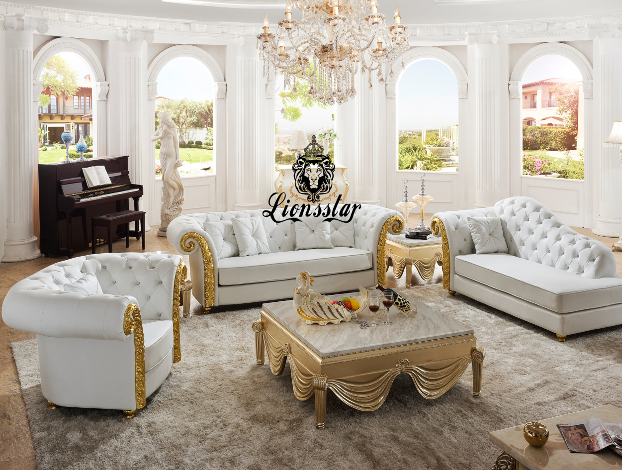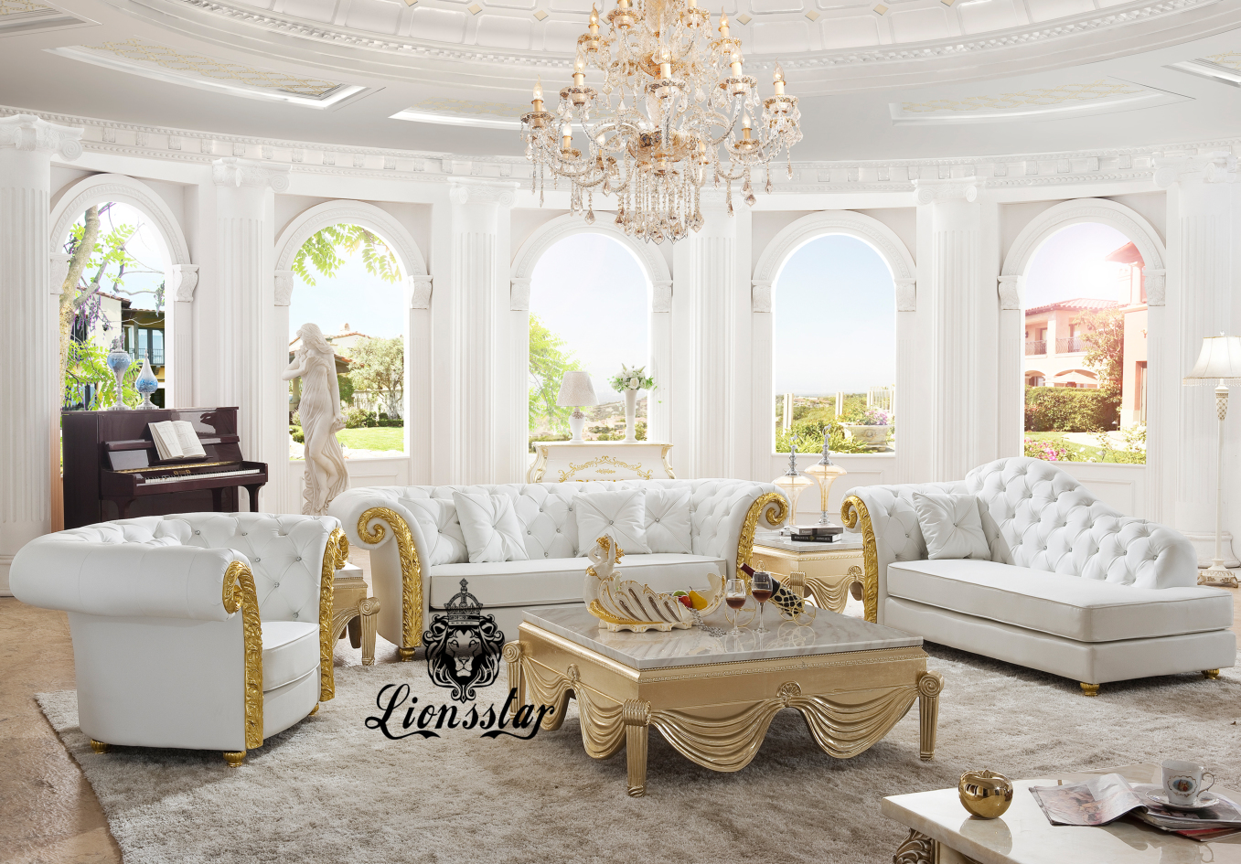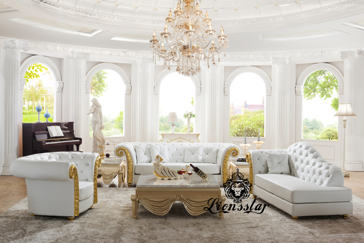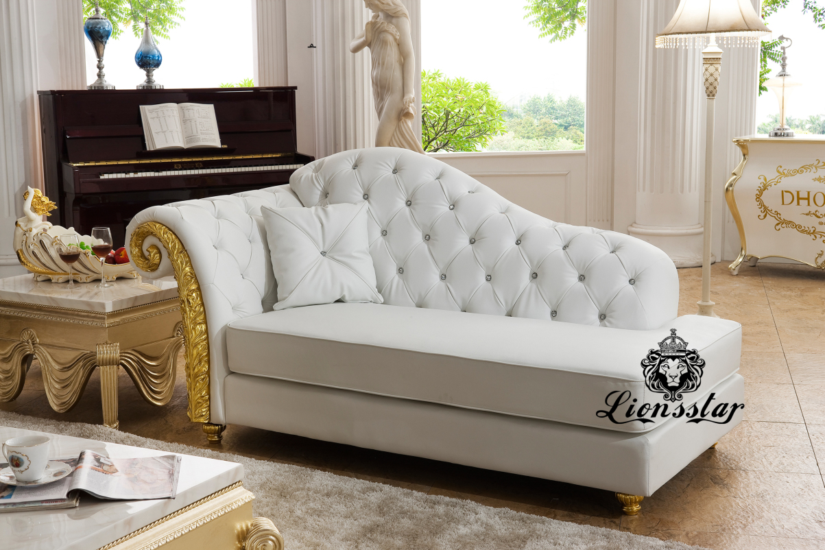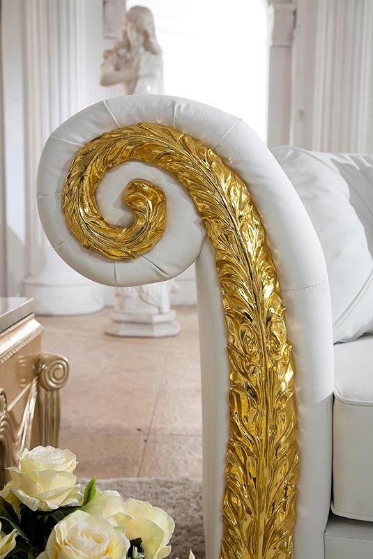 Die Oberfläche dieses Barock Sofa-Sets Sissi Recamiere wurde in mehreren aufwendigen Arbeitsgängen veredelt.