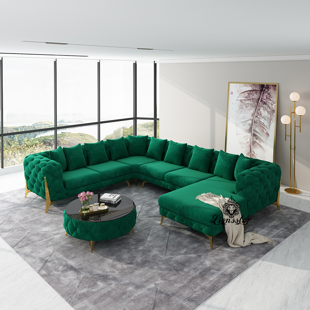 Die Oberfläche dieser Designer Luxus Wohnlandschaft Clouds High Leg U Form wurde in mehreren aufwendigen Arbeitsgängen veredelt.